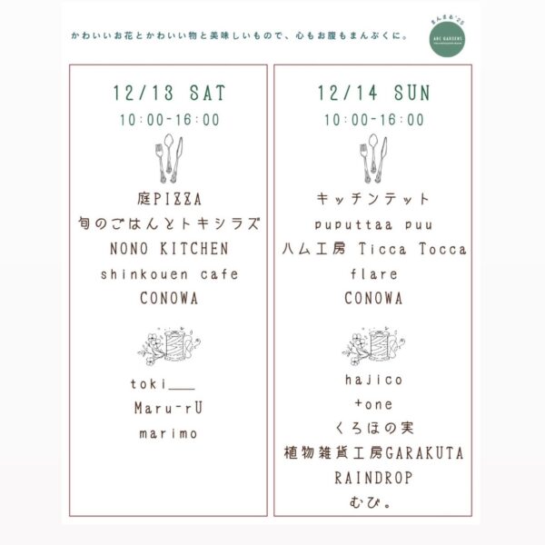 ABCガーデンズ様にて開催の『クリスマスマーケット』に出店します。