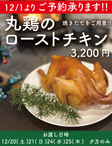 12月1日(月)よりご予約受付開始「丸鶏のローストチキン」